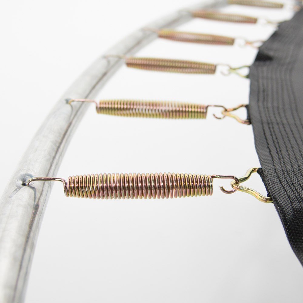 - The frame is held together with X junction components, a France Trampoline novelty, which securely maintains the structure and allows you to easily assemble your trampoline.