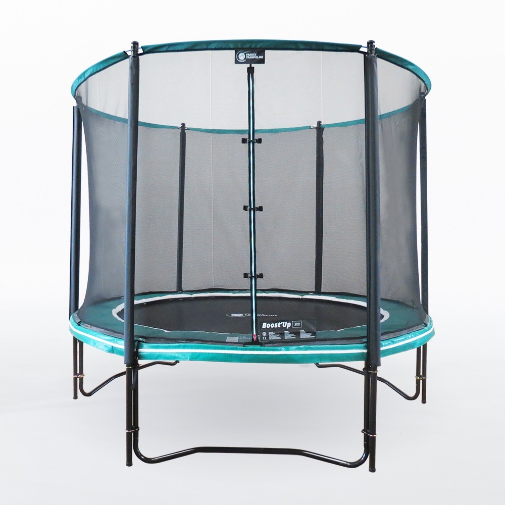 - A premium, tightly-woven net safety enclosure comes with the Boost'Up 300 trampoline. It is equipped with 6 net posts that are firmly positioned on the ground for optimal stability when in use. Like the trampoline frame, the net posts are also made of (38 mm diameter) galvanized steel.