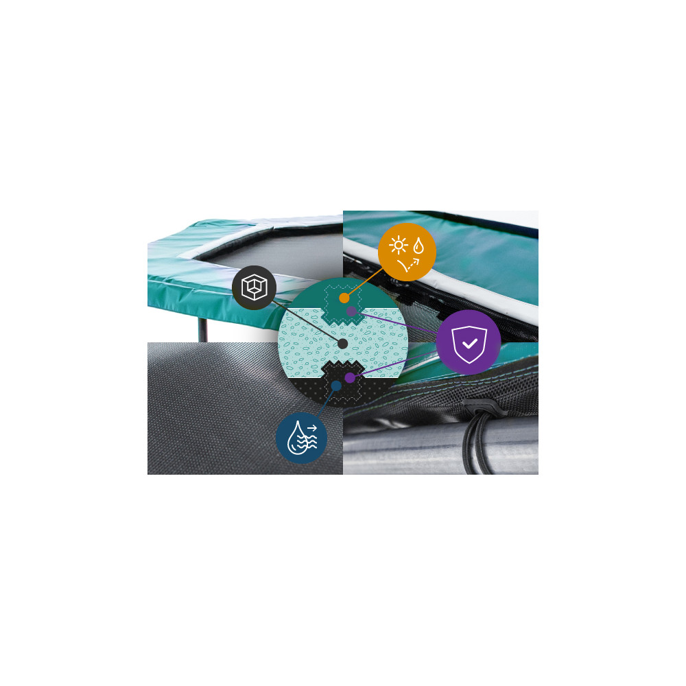 - La toile de saut AirJump de l'Octopuluse 460 du trampoline est renforcée de 8 rangs de couture. Le traitement anti-UV de la toile de saut vous garantit une durabilité maximale.